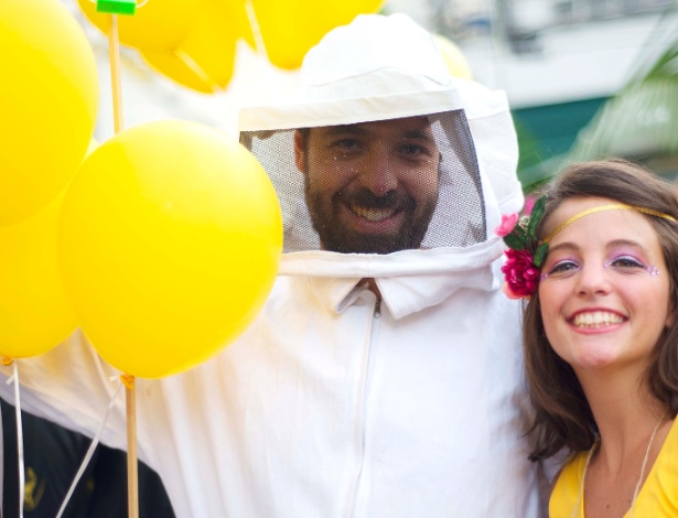 Várias pessoas foram à festa fantasiadas – o Chapeleiro Maluco, de Alice no país das maravilhas, e o Barney, o dinossauro de programas infantis da TV, pararam para varias selfies com o público. Usando apenas uma placa no pescoço, com a frase “Abraço Grátis”, o autônomo Ícaro Bueno, de 29 anos, era dos mais animados. “É só demonstração de carinho”, respondeu Bueno se a fantasia facilitava a paquera. “Eu sou um casado”, riu.