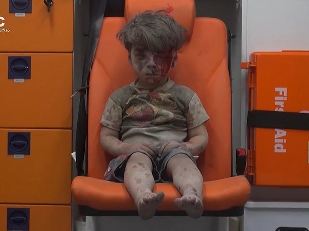Ativistas da oposição síria divulgaram uma gravação chocante, que mostra um jovem menino resgatado dos escombros após um devastador ataque aéreo em Alepo. As fotos e o vídeo mostram o garoto sentado, coberto pelo pó dos escombros e com sangue no rosto, e foram vistas como um resumo dos horrores infligidos à população nessa cidade do norte da Síria assolada pela guerra.