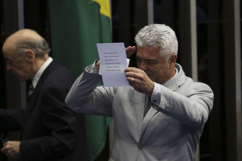Para recordar: são 81 senadores. Porém, na primeira votação, foram computadas 82 cédulas, que foram rasgadas. Em seguida, as demais cédulas foram trituradas por ordem da direção da Mesa do Senado.