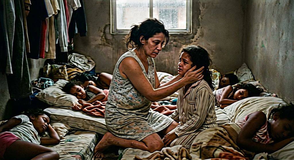A mulher, mal acordou, percebeu a ausência do marido naquela pilha de gente. Levantou-se, tomou o cuidado de não pisar em ninguém e, assim que chegou perto da porta, viu Letícia, de 8 anos, a caçula de Gilberto.