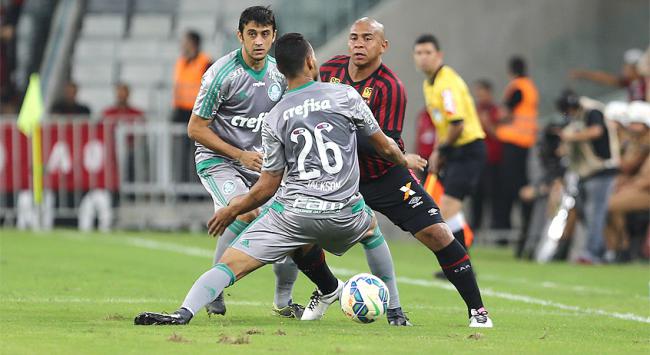 Após um primeiro tempo muito ruim e uma etapa final cheia de altos e baixos, o Palmeiras conseguiu empatar em 3 a 3 com o Atlético Paranaense, nesta quarta-feira, na Arena da Baixada, em Curitiba, pela 35.ª rodada do Campeonato Brasileiro, com um gol no último minuto, mas saiu do gramado revoltado com a atuação do árbitro paraense Dewson Fernando Freitas da Silva, que expulsou dois palmeirenses. O resultado buscado no final do jogo não pode encobrir as sucessivas falhas de marcação da equipe.