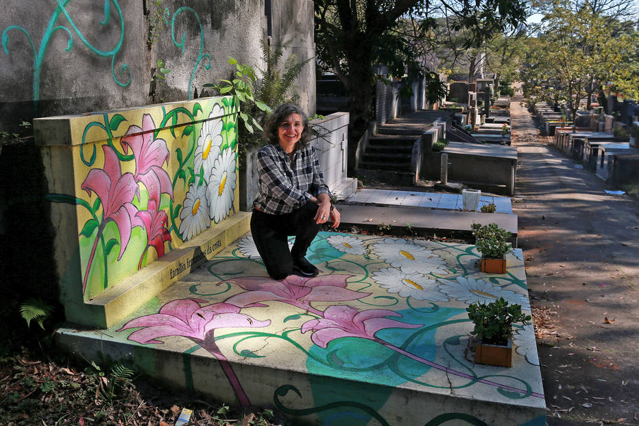 No caso do jazigo da família da empresária Vera de Carvalho Enderle, de 59 anos, a solução foi mais criativa. Ao visitar o túmulo no Araçá após um furto, em 2016, pensou: “o único jeito de ninguém roubar é pintar”. Decidiu, então, contratar o grafiteiro Katota, amigo de seu filho, que pintou o espaço de amarelo e desenhou flores. No ano passado, após novo furto, optou por sinalizar o nome dos parentes com placas automotivas adaptadas.