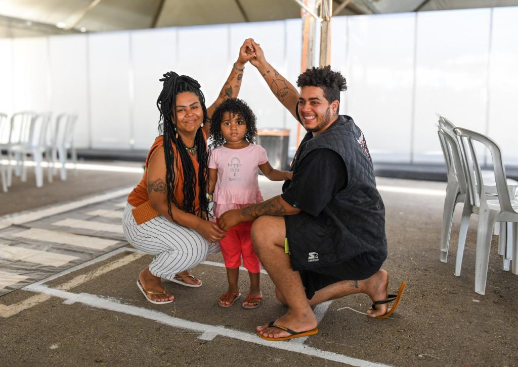 O evento também foi cenário para histórias marcadas por afeto e novos começos. Arissa Chagas, 30, e Damon Luiz Gomes, 26, decidiram oficializar a união após verem o espaço dedicado à inscrição da primeira edição de 2026 do Casamento Comunitário, marcada para 22 de março. “Fiquei apreensiva, mas muito feliz com a oportunidade de dar esse passo tão importante na nossa vida”, disse Arissa, que, ao lado da pequena Chandu Naiana, filha do casal, recebeu de surpresa o pedido de casamento de Damon.