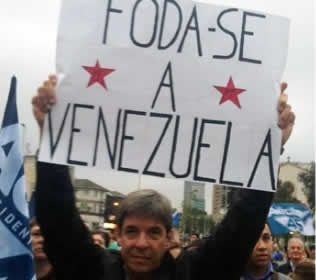 O Pátria Latina, mesclando informações do Brasil 247, promete combater qualquer iniciativa voltada a destituir a petista do Palácio do Planalto. E mostra algumas armas, como a informação de que Fernão Lara Mesquita, um dos herdeiros do grupo Estadão, circulou pelas ruas da capital paulista com cartaz onde se lia “Foda-se a Venezuela”.