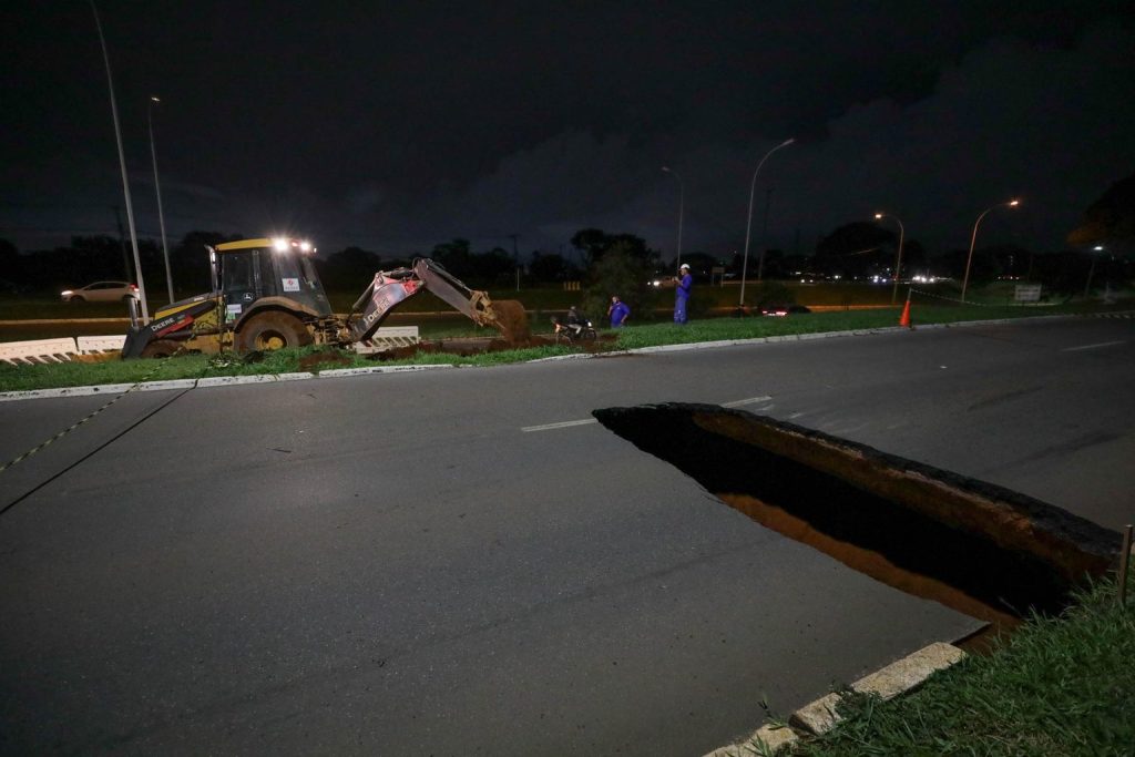 Na noite desta quarta-feira (3), equipes do Governo do Distrito Federal iniciaram os trabalhos para reparar o asfalto e uma corrosão na rede de esgoto em um trecho da via no Setor Policial Sul. Os trabalhos serão feitos de forma ininterrupta pelos técnicos da Companhia de Saneamento Ambiental do Distrito Federal (Caesb) até a completa finalização.