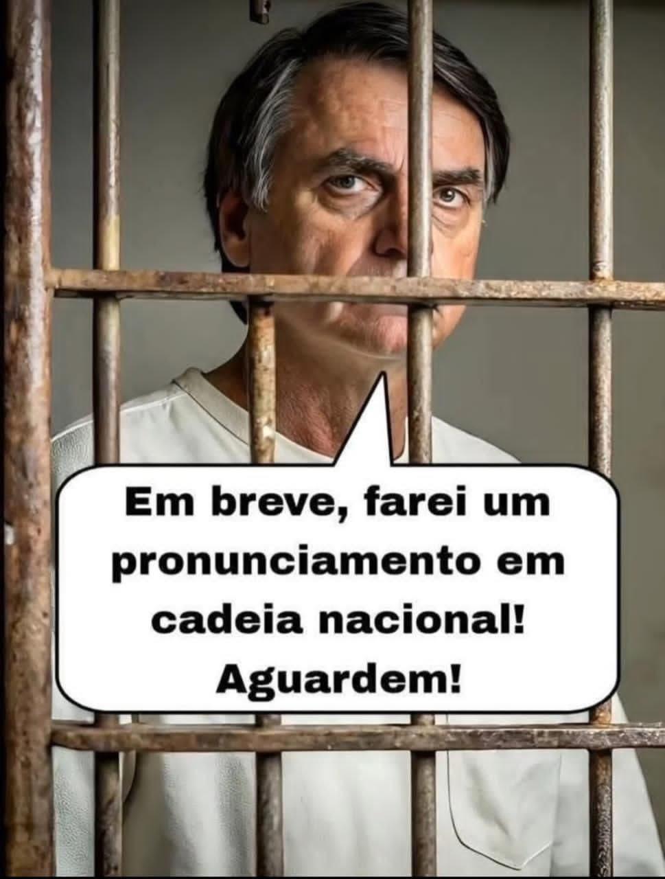 A mais hilária começou a circular justamente no dia em que a Corte abriu o processo: Bolsonaro aparece atrás das grades, prometendo em breve um “pronunciamento em cadeia”.