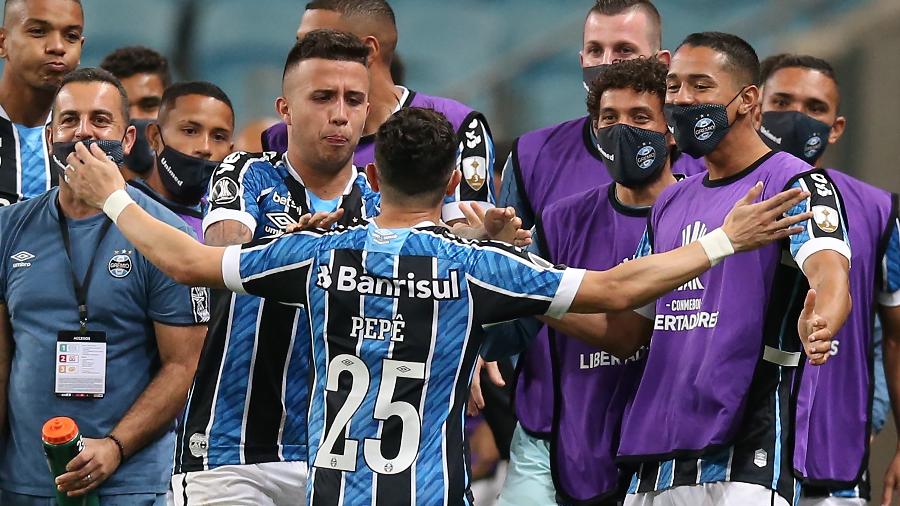 A vaga na próxima fase pode até ser confirmada nas próximas horas, dependendo do resultado de América de Cali e Inter. Pepê e Rodrigues fizeram os gols do Grêmio no segundo tempo. Em menos de 20 minutos.