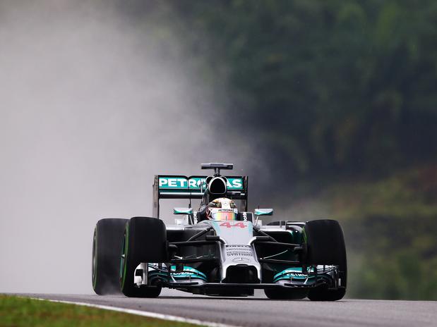 O britânico Lewis Hamilton conquistou neste sábado a pole position para o Grande Prêmio da Malásia de Fórmula 1, no Circuito de Sepang. Em uma sessão marcada pelas fortes chuvas, Hamilton – que já havia sido pole na Austrália – marcou 1min59s431 no Q3, contra 1min59s486 do alemão Sebastian Vettel (Red Bull), que larga em segundo. Nico Rosberg e Fernando Alonso saem da segunda fila.