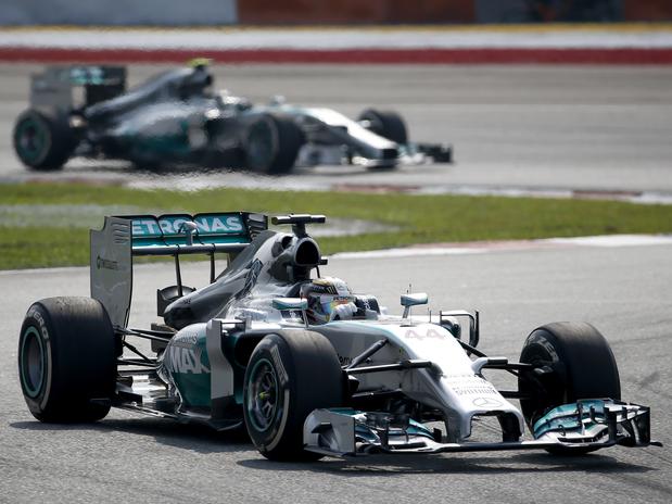 Lewis Hamilton venceu com sobras o Grande Prêmio da Malásia de Fórmula 1, neste domingo, no Circuito de Sepang. Pole position da prova, o britânico praticamente não foi ameaçado durante toda a corrida e cruzou a linha de chegada à frente de seu companheiro, o alemão Nico Rosberg. Sebastian Vettel, em final de semana competitivo, completou o pódio com a terceira posição.