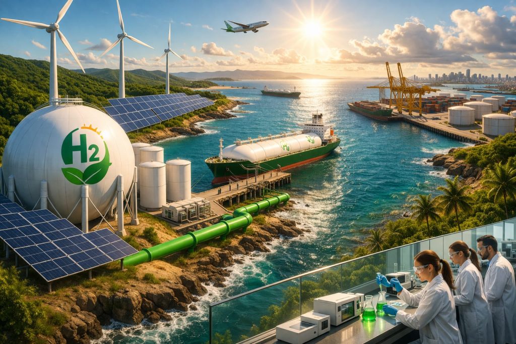 No Complexo Industrial e Portuário de Porto de Suape, projetos voltados à produção de hidrogênio a partir de fontes renováveis já estão em fase de planejamento avançado. A ideia é utilizar energia solar e eólica — abundantes na região — para gerar um combustível limpo, considerado estratégico para o futuro da indústria e do transporte.