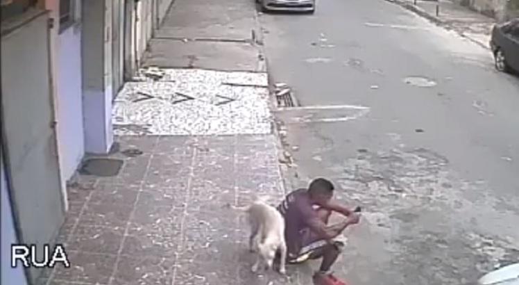 Confira no vídeo abaixo o momento em que o cão faz xixi no homem: