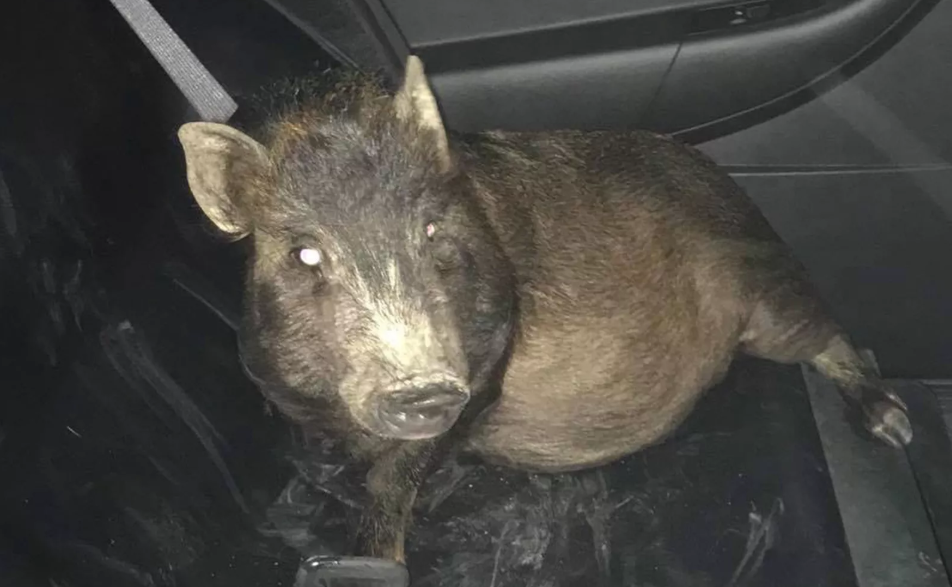A princípio, os policiais pensaram que ele estivesse embriagado, mas eles constataram que ele estava “muito sóbrio” e realmente sendo seguido pelo suíno.