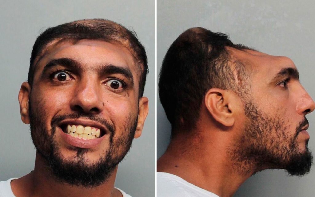 Um homem de 31 anos com uma severa deformidade no crânio está sendo acusado de provocar um incêndio e de tentativa de homicídio, segundo a polícia de Miami.