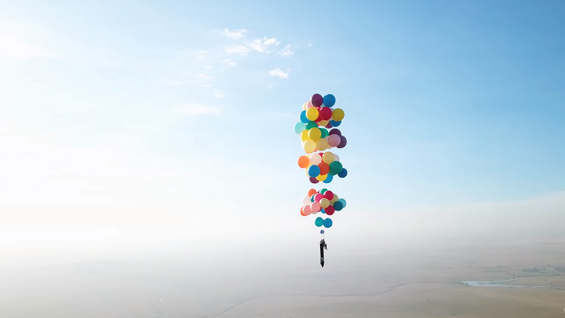 Durante duas horas, Tom Morgan, administrador da companhia The Adventurists – que realiza eventos de aventura ao redor do mundo -, viveu a cena do filme Up – Altas Aventuras em que a casa do velhinho Carl Fredericksen voa com balões: ele foi alçado a uma altitude de 2.530 metros e percorreu uma distância de 24 quilômetros na África do Sul sustentado apenas por balões de hélio e uma cadeira de campismo.