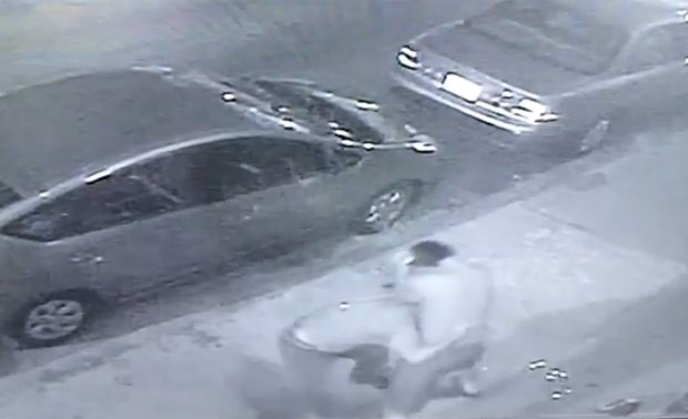 A cena filmada por câmeras de segurança mostra os dois homens cambaleando e tentando trocar agressões após se estranharem.