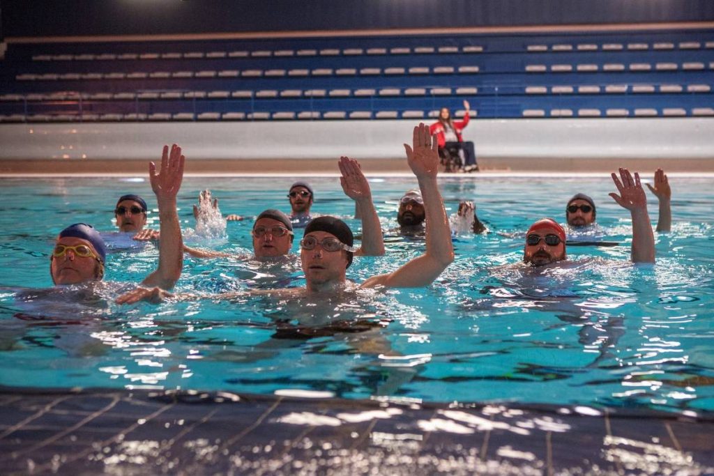 Bertrand inscreve-se e é aceito no desastrado grupo. Entre um treino e outro, os nadadores fazem sauna – e bebem. Contam-se os problemas, e todos os têm. A instrutora, Virginia Efira, também está em crise – é alcoólatra. É salva pela ex-parceira, Leïla Bekhti, quando o grupo, contra todas as possibilidades, se inscreve no campeonato mundial da categoria.