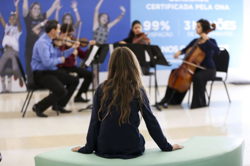 O saguão central do Hospital da Criança de Brasília José Alencar (HCB) se transformou em palco de um concerto musical de um quarteto de cordas. Com arranjos de composições populares entre o público infantil, como Trenzinho, de Heitor Villa-Lobos, músicos da Orquestra Sinfônica de Brasília do Teatro Nacional Cláudio Santoro buscaram desanuviar a carga tipicamente associada a ambientes clínicos.