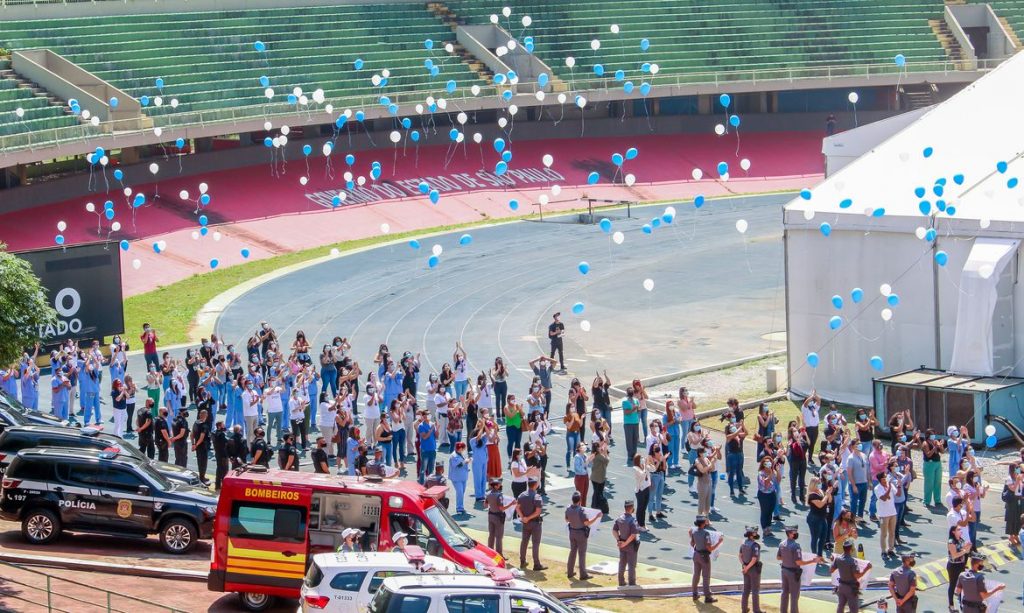 Cada profissional que atuou no local saiu da estrutura hospitalar com uma medalha, com a frase “Você fez a diferença. Nossa força vem da união”, carregando balões nas cores azul e branca. As bexigas foram lançadas ao ar para representar e homenagear todas as 2,4 mil vidas salvas no hospital.