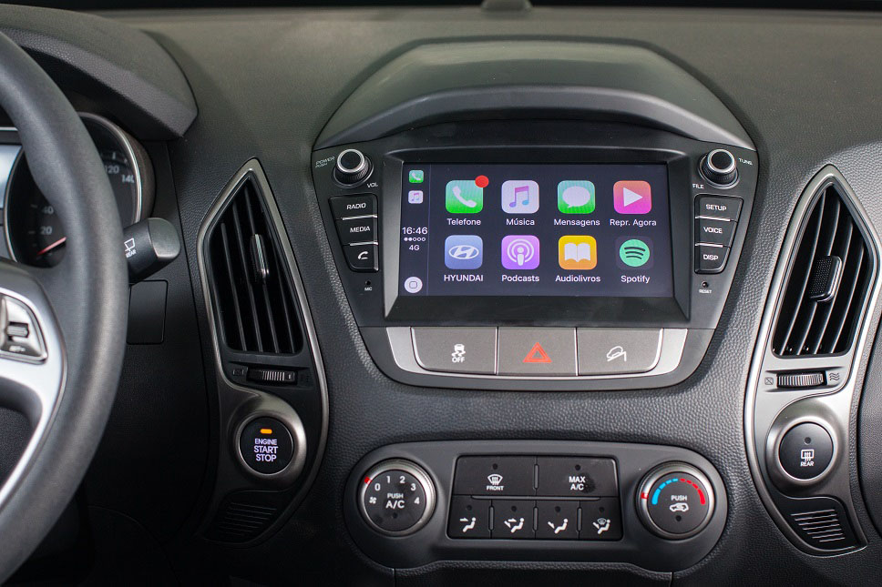 O Hyundai ix35 acaba de ganhar nova central multimídia, disponível para as versões GL (intermediária) e GLS (de topo). Com tela de 7 polegadas sensível ao toque, o sistema é compatível com aplicativos como Android Auto, Apple CarPlay e OnCar. Há ainda entradas USB para áudio e vídeo e wi-fi.