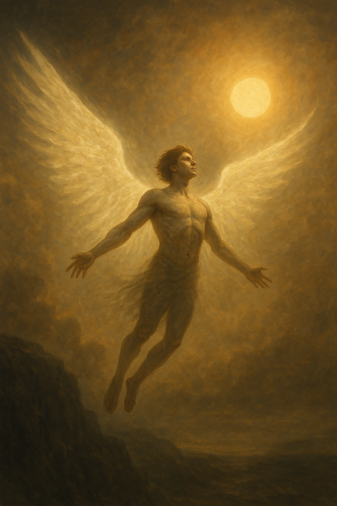 Para o olhar místico, a história não fala apenas de desobediência ou orgulho. Ela reflete a eterna jornada da alma humana em busca da transcendência. As asas representam o espírito, o anseio por tocar o invisível; o Sol, a luz do conhecimento e da verdade; e o mar, a densidade do mundo material que nos acolhe quando caímos.