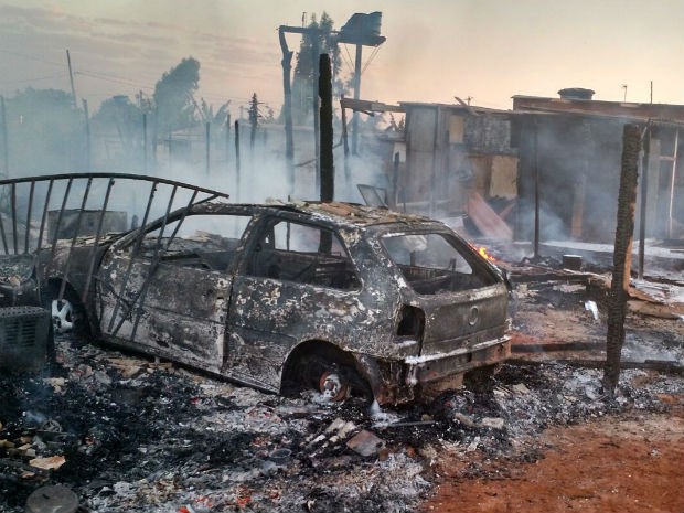Segundo a corporação, um carro e cinco barracos foram totalmente queimados e outros três tiveram parte da estrutura incendiada. Ao todo, 14 pessoas ficaram sem moradia.