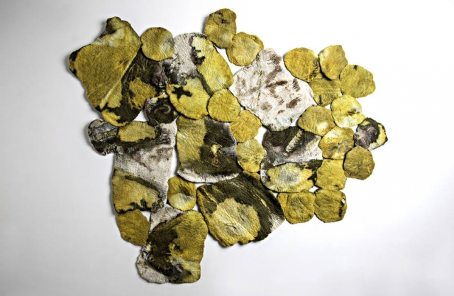 Trata-se do processo de tecelagem mais antigo da humanidade, embora, na verdade não dê origem a um tecido. Antes mesmo de surgir o fio e de inventarem o tear, os antigos manipulavam a lã das ovelhas. A técnica que uso é exatamente a mesma usada há 4 mil anos. A lã é massageada e friccionada ate que as fibras encolham e, por fim, se agarrem, dando origem ao feltro manual. A única diferença é que uso água e sabão para massagear as fibras, enquanto na antiguidade acredita-se que usavam o soro do leite. Independentemente do tipo de objeto ou peça, uso sempre a feltragem em minhas criações. Me fascina poder reutilizar um material tão nobre, não mais necessário as ovelhas e, ao mesmo tempo, de certa forma homenagear uma tradição milenar, por meio de algo fresco e contemporâneo.