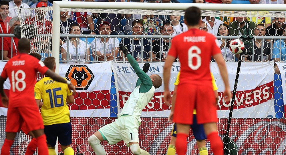 Com 57% de posse de bola e cinco finalizações contra apenas uma da Suécia, a Inglaterra dominava a partida em Samara. O segredo principal para chegar à semifinal pela primeira vez desde 1990 era neutralizar a bola aérea da Suécia. Foi exatamente o que ocorreu com um minuto do segundo tempo, quando Augustinsson conseguiu boa cabeçada e Pickford fez uma defesa extraordinária.