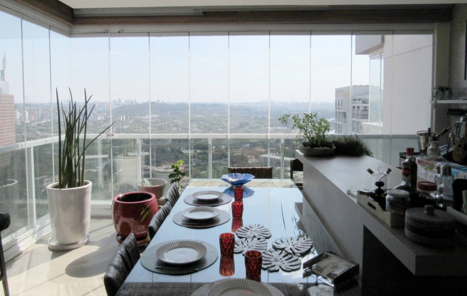 A diminuição da área dos apartamentos deu novo cargo a esta parte externa da casa: integrar as varandas ao estar garantia mais espaço e integração de ambientes. O fechamento das varandas com vidro, além de proteger do vento e da chuva, também passou a ser uma forma simbólica de se isolar da vida agitada lá de fora. Usar a área comum dos prédios se tornou mais viável e menos trabalhoso.