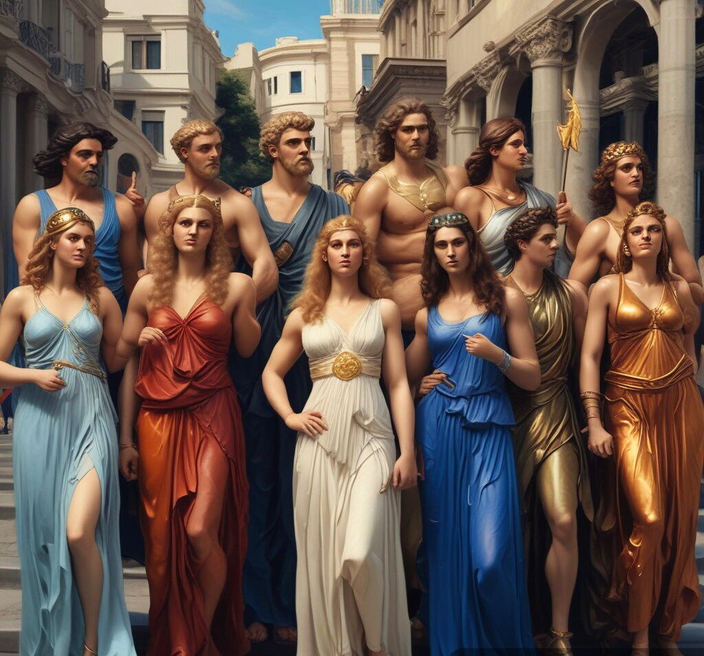 Assustado, ele identificou figuras masculinas e femininas vestindo túnicas de estilo antigo. “Pelas roupas e pelo porte, devem ser divindades do Olimpo, da Grécia antiga”, concluiu. Viu outras deidades de cabelos ruivos, imaginou que poderiam ter vindo do panteão celta ou germânico. E havia muito mais.