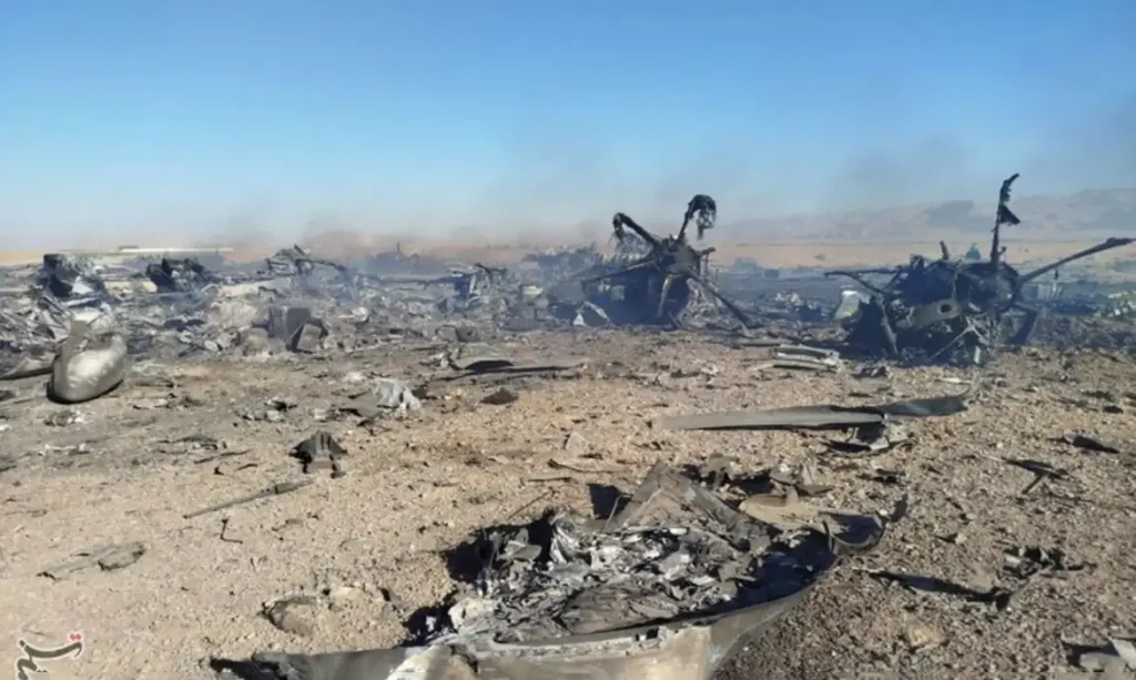 As fotos mostram destroços do que parecem ser dois helicópteros. Segundo a Tasnin, foram abatidos dois helicópteros Black Hawk e um avião de transporte C-130. “O porta-voz disse que a operação resultou na destruição de várias aeronaves hostis e descreveu o resultado [da operação] como outra derrota humilhante para os Estados Unidos, traçando paralelos com a fracassada operação Eagle Claw, de abril de 1980”, acrescentou a agência.