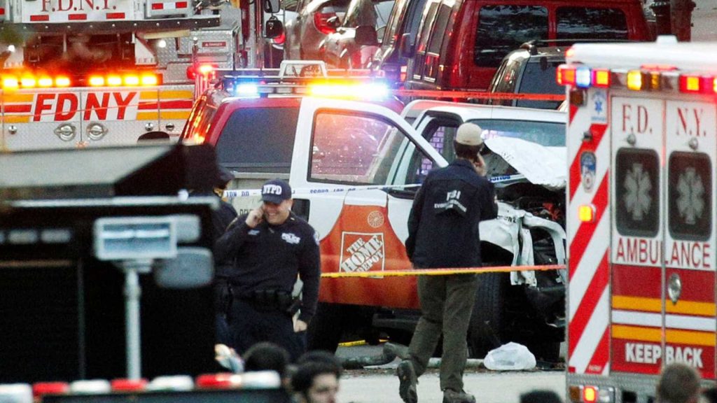 O atentado ocorreu quando um homem, identificado como Sayfullo Saipov, atropelou com uma caminhonete várias pessoas, algumas delas em uma ciclovia, perto da margem do Rio Hudson. Até o momento, as autoridades confirmaram que uma pessoa supostamente vinculada com o atropelamento foi detida. A área fica a poucas quadras de onde ficavam as Torres Gêmeas, derrubadas por aviões em outro atentado terrorista, em 11 de setembro de 2001.