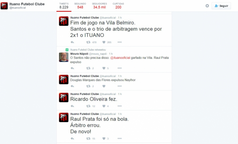 Ituano foi garfado, desabafa diretoria após derrota para o Santos na Vila Belmiro