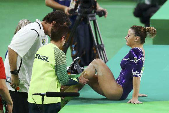 Jade Barbosa, que foi escalada para disputar a final no lugar da ginasta Flávia Saraiva, machucou o tornozelo na apresentação do solo e não finalizou a disputa.