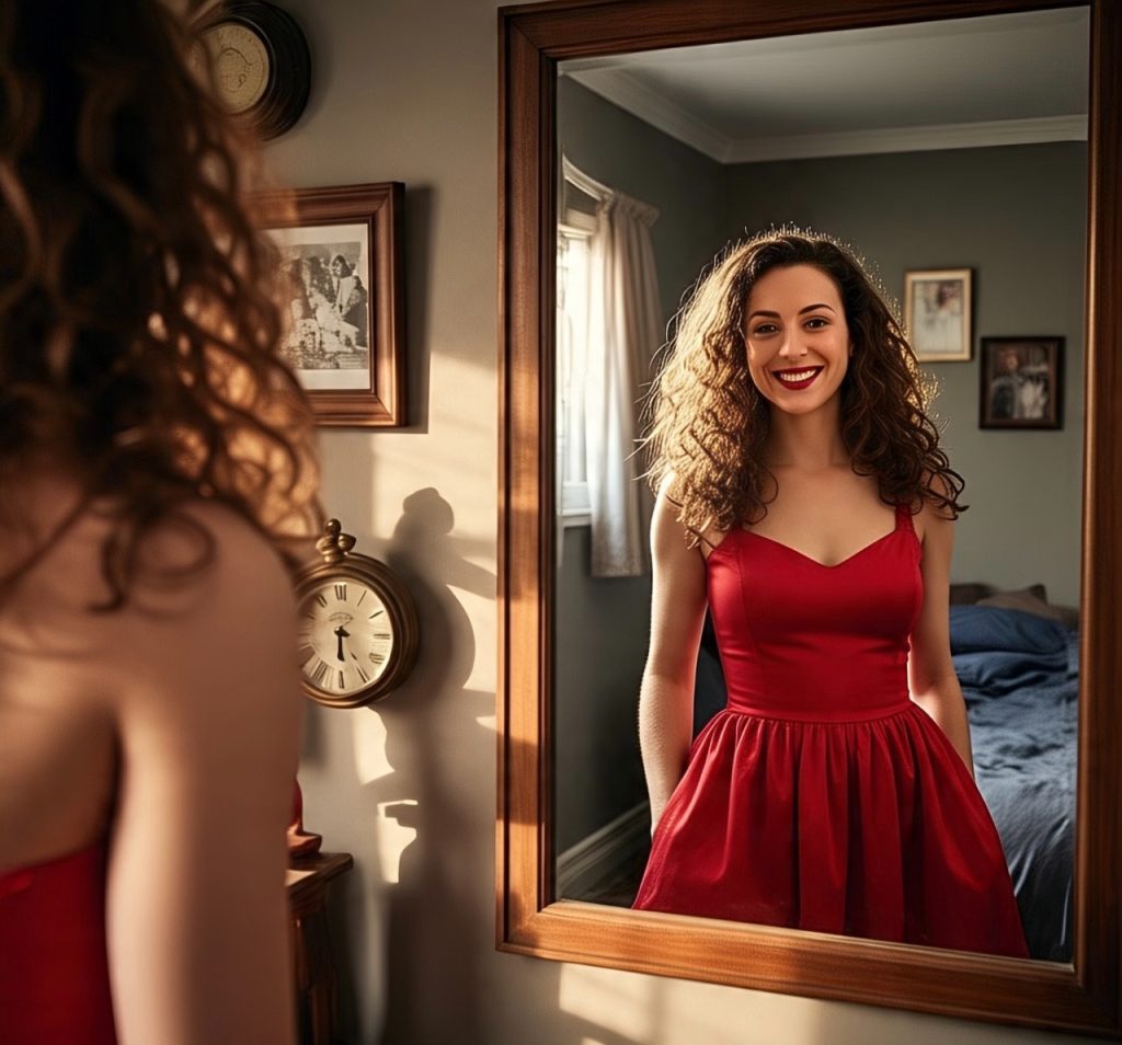 Quanto se deu conta, já estava dando os últimos retoques diante do amplo espelho do quarto. Girou o corpo levemente para ver se o vestido vermelho estava sutilmente ajustado nas partes mais chamativas, quando o telefone tocou. Ela olhou a tela do celular e viu que era o quase namorado.