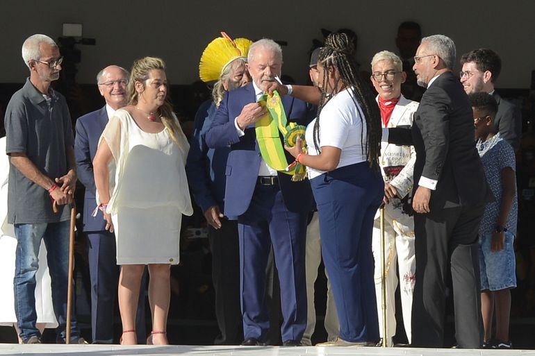 Jnja acertou em cheio. A imagem emblemática da terceira posse de Lula como presidente do Brasil será para sempre aquela em que ele sobe a rampa de braços dados com cidadãos que representam a diversidade da população brasileira e a enorme fatia da sociedade desprezada pelo governo Bolsonaro: os indígenas, as mulheres, os negros, as crianças, as pessoas com deficiência, os trabalhadores – o metalúrgico, a cozinheira, o artesão, o professor. O ápice da cerimônia organizada por Janja, a entrega da faixa presidencial, coube a uma jovem negra, Aline Sousa, catadora de recicláveis como sua mãe e avó. A cadelinha “Resistência”, adotada na vigília de Curitiba, veio como porta-estandarte desse resgate coletivo da dignidade, aviltada por Jair Bolsonaro e seus aliados.