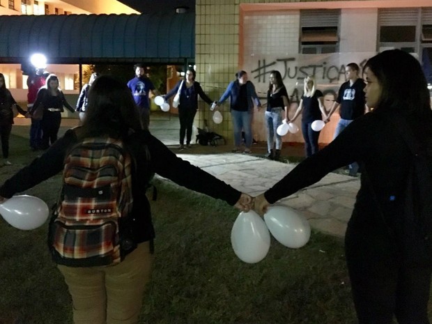Na noite desta quarta, 15, colegas de Jéssica prestaram uma homenagem à estudante.