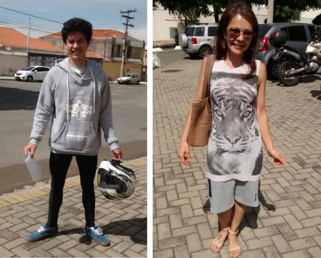 O estudante até pensou em passar numa loja para comprar uma calça ou ir para sua casa se trocar, mas não daria tempo. Foi quando ele teve a ideia de trocar sua bermuda pela calça legging da mãe, Eleni Hatamoto.