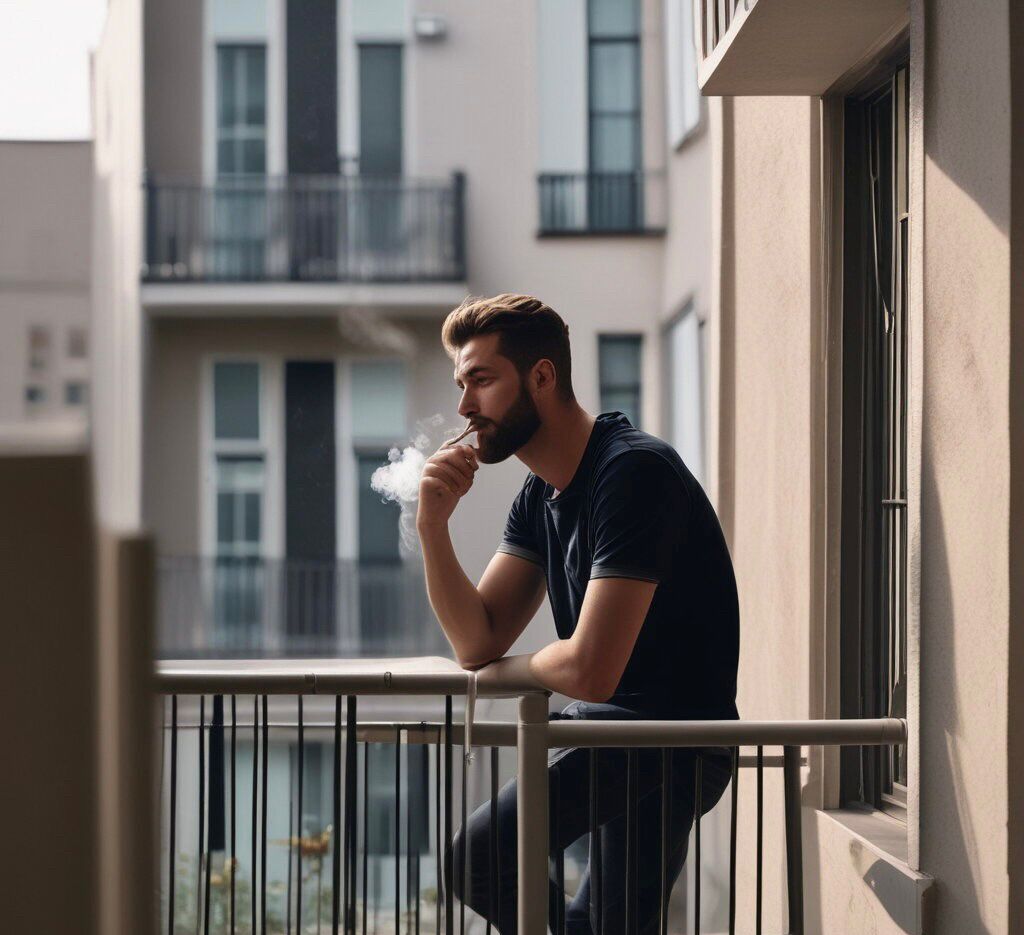 Ele estava fumando na varandinha do apartamento quando Teresa entrou em sua própria casa.