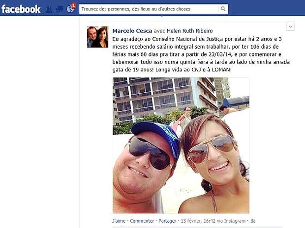 Cesca ficou famoso ao ironizar o Poder Judiciário em sua página no Facebook, dizendo que ganhava salário sem trabalhar.
