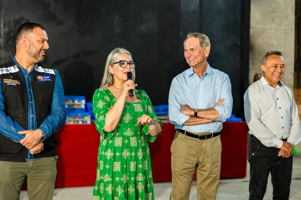 A secretária destacou a importância da entrega dos kits – compostos por cadernos, canetas, lápis, borracha, entre outros materiais de largo consumo. “Eu nasci no Brasil profundo, no interior do Piauí, em uma cidade chamada Corrente, e fui criada vendo meus colegas apagando o caderno do ano anterior para usar no ano subsequente, fazendo contas em papel de padaria. Essa entrega de materiais muda a vida das pessoas, pois elas encontraram um empresário que não pensa apenas em ganhar dinheiro, mas também em beneficiar os empregados da sua construtora com o que há de mais importante: dar dignidade ao estudante, que entra na escola em pé de igualdade com outras as crianças que podem pagar pelo material escolar”, enfatizou Hélvia Paranaguá.