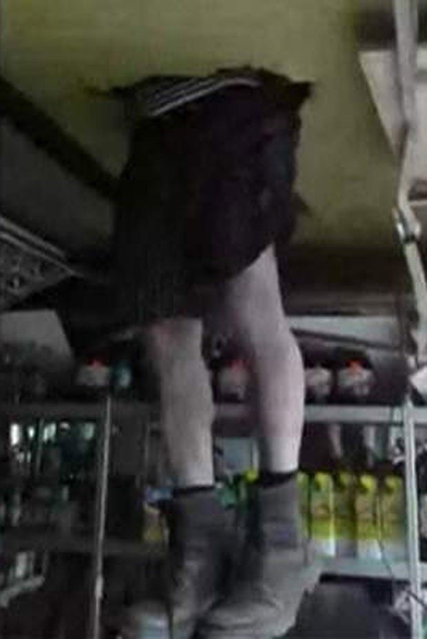 Um homem de 40 anos ficou entalado no teto ao tentar invadir uma loja na cidade russa de Krasnoyarsk, de madrugada.