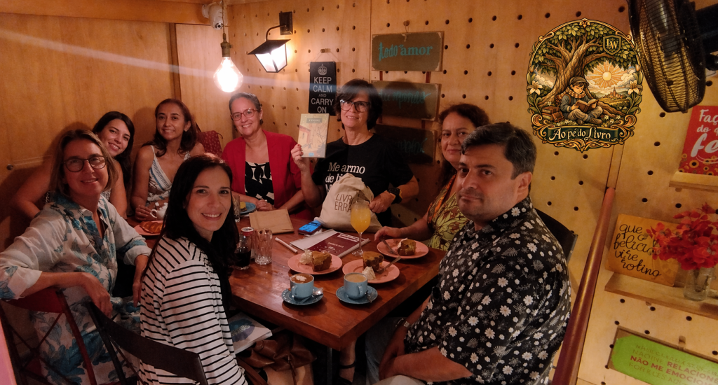 Logo me perguntei o que seria dos grupos de leitura que Ladyce coordenava havia muitos anos, conforme me contou Fabiana, para um dos quais eu até havia sido convidada e ao qual teria aderido com grande alegria, não fosse a distância em que então me encontrava do Rio de Janeiro, ampliada ainda mais nos últimos meses. Maior foi minha alegria ao saber, também por Fabiana, que os principais grupos de leitura criados e conduzidos por Ladyce ao longo dos anos, o Papa Livros e o Ao Pé da Letra, acabaram se unindo em um só: o Ao Pé do Livro, fundado no dia 12 de abril, em uma charmosa cafeteria de Santa Teresa, no Rio de Janeiro.