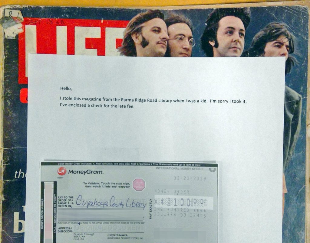 A direção da biblioteca afirmou que recebeu esta semana a revista, um exemplar da “Life”, junto com um cheque relativo à “multa” e um pedido de desculpas.