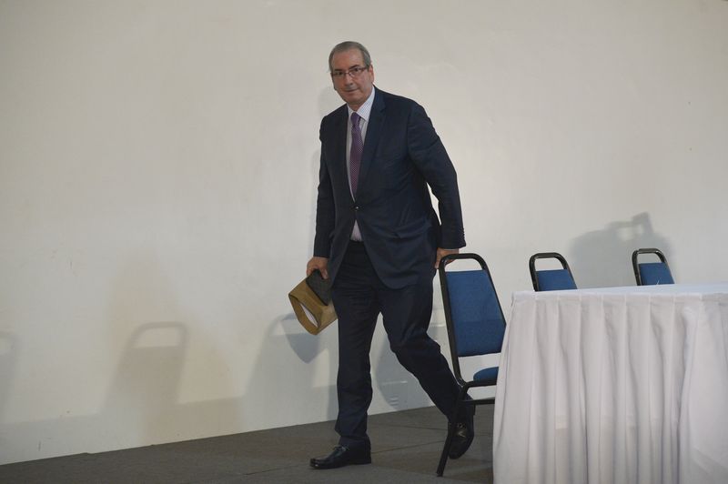 Cunha deixou o prédio do Hotel Nacional, em Brasília, pela saída de emergência para evitar os manifestantes que gritavam da rua “fora cunha, bandido”.