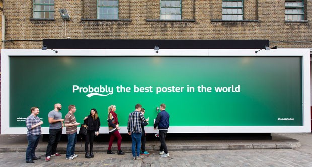 Um outdoor de cerveja está fazendo sucesso do lado de fora da cervejaria Truman, em Shoreditch, Londres.