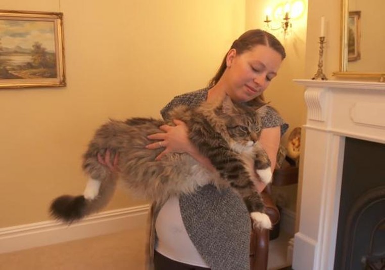 Segundo a dona, o gato é um pouco preguiçoso e seu enorme comprimento faz com ele seja mais desajeitado do que outros gatos.