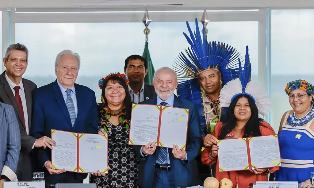 O presidente Luiz Inácio Lula da Silva assinou na quarta (4), a demarcação da terra indígena Potiguara de Monte-Mor, na Paraíba. Além da demarcação, ele destacou a necessidade de garantir políticas públicas para a região e outros territórios de povos originários.