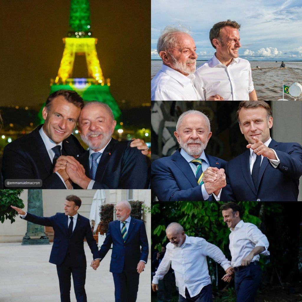 Tenho me divertido horrores com as fotos do Lula e do Macron. Juro, se eu não soubesse que era uma visita de Estado, ia achar que era álbum de lua de mel. Os dois aparecem juntos em todos os ângulos possíveis: Lula olhando o horizonte com aquele ar pensativo, Macron ao lado, quase encostando o rosto — faltou só a legenda “meu mundo é você”.