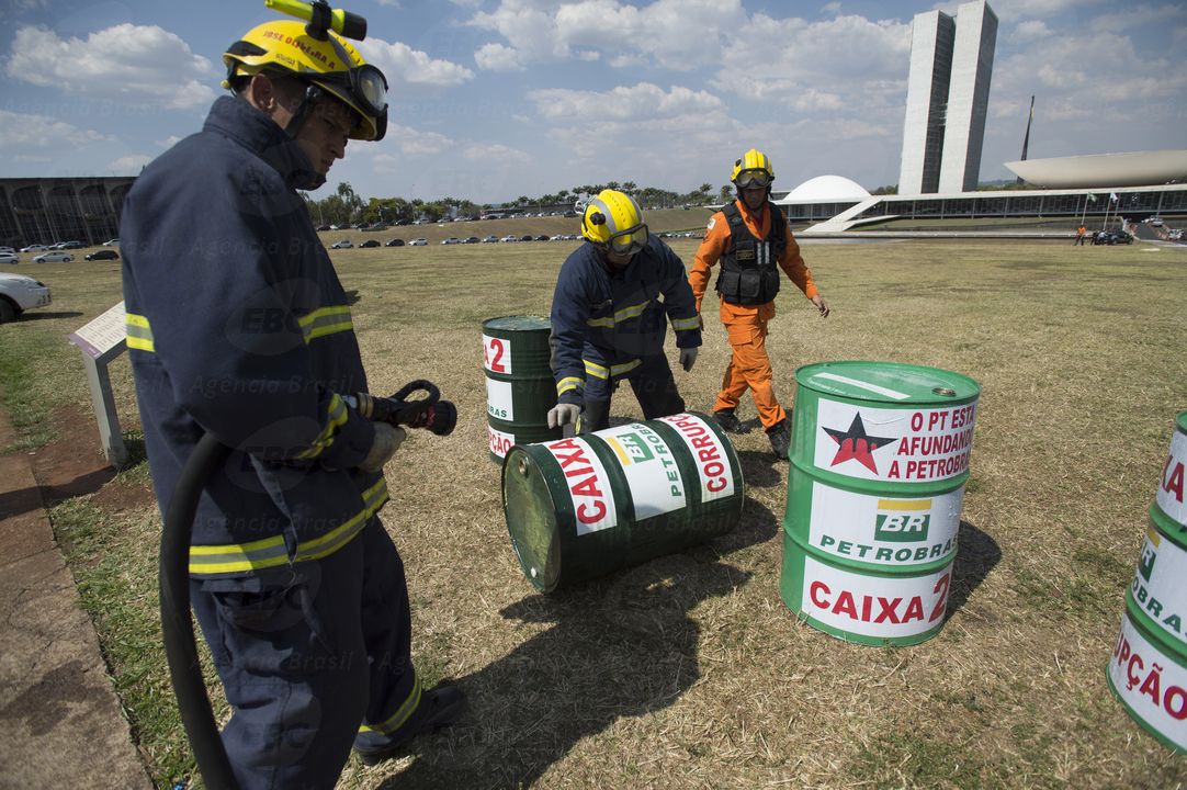 Minutos antes do início do depoimento do ex-diretor de Abastecimento e Refino da Petrobras Paulo Roberto Costa na comissão parlamentar mista de inquérito (CPMI) que investiga denúncias de irregularidades na empresa, agentes do Corpo de Bombeiros e da Polícia Legislativa do Senado foram acionados para apurar a possibilidade de problemas em um protesto em frente ao Congresso Nacional.