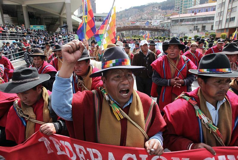 O país também tem protestos de um grupo de cocaleiros contrários a uma nova lei de coca e marchas contra o governo da Central Obrera Boliviana, que agrupa grande quantidade de trabalhadores. As ruas do centro de La Paz entraram em colapso neste dia de marchas.